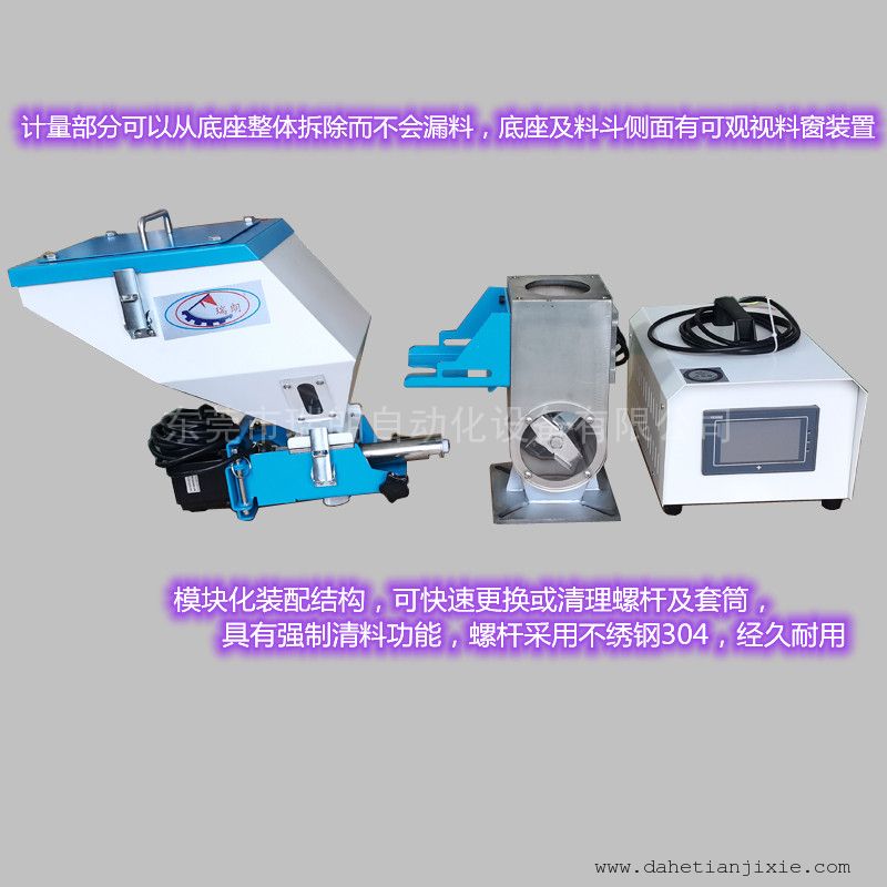 8.計量部分可以從底座整體拆除而不會漏料,底座及料斗側(cè)面有可觀視料窗裝置,易觀察原料;