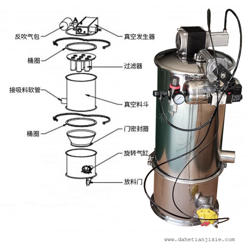 全自動真空吸粉機 奶粉面粉封閉式上料機是一種借助于真空吸力來傳送顆粒和粉末狀物料的無塵密閉管道輸送設(shè)備,利用真空與環(huán)境空間的氣壓差,形成管道內(nèi)氣體流動,帶動粉狀物料運動,從而完成粉體的輸送。
